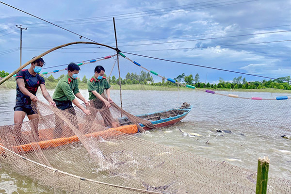 Công an kéo lưới bắt cá trao cho người dân gặp khó khăn trong dịch
